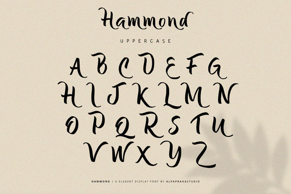 Hammond is a elegant display font with modern and stylish feels. It will be perfectly used for Branding, Logo Design, Lettering, Logotype, Clothing, Poster, magazine, packaging, posters, shopping bags, t-shirts, book covers, photography, special events and other design project.
