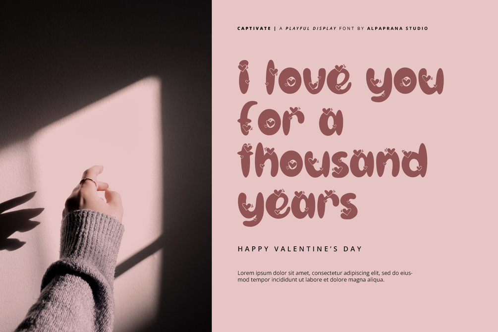 Captivate is a display font with romantic and modern feels. It will be perfectly used for Branding, Logo Design, Lettering, Logotype, Clothing, Poster, magazine, packaging, posters, shopping bags, t-shirts, book covers, photography, special events and other design project.