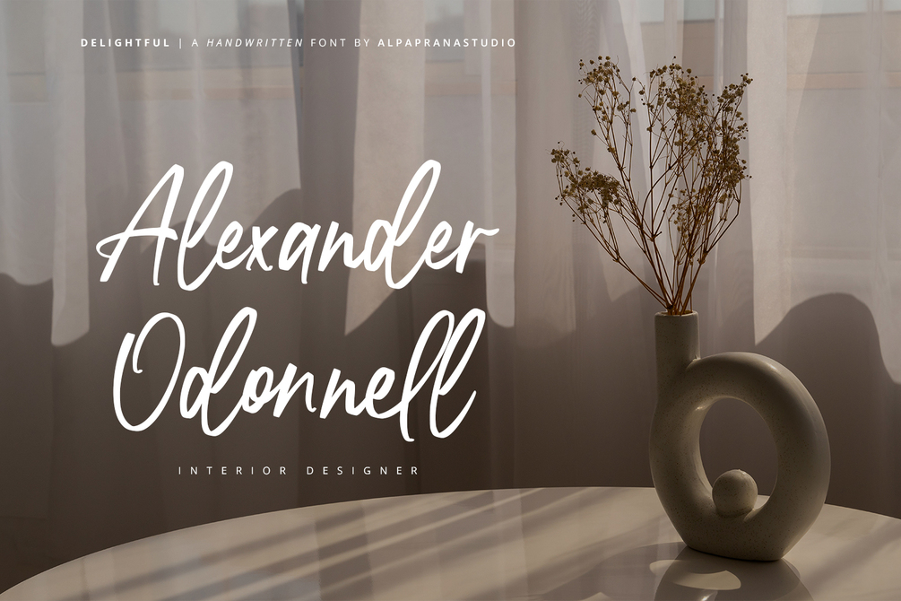 Delightful is a handwritten font with natural and modern feels. It will be perfectly used for Branding, Logo Design, Lettering, Logotype, Clothing, Poster, magazine, packaging, posters, shopping bags, t-shirts, book covers, photography, special events and other design project.
